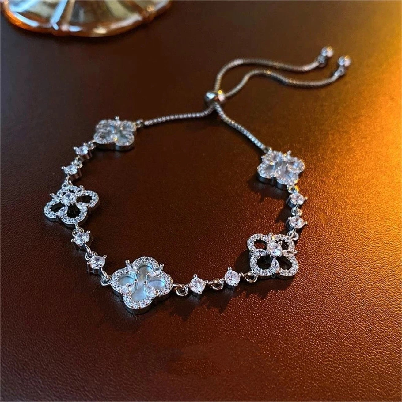 Pink Fritillaria Four Leaf Clover Adjustable Bracelet