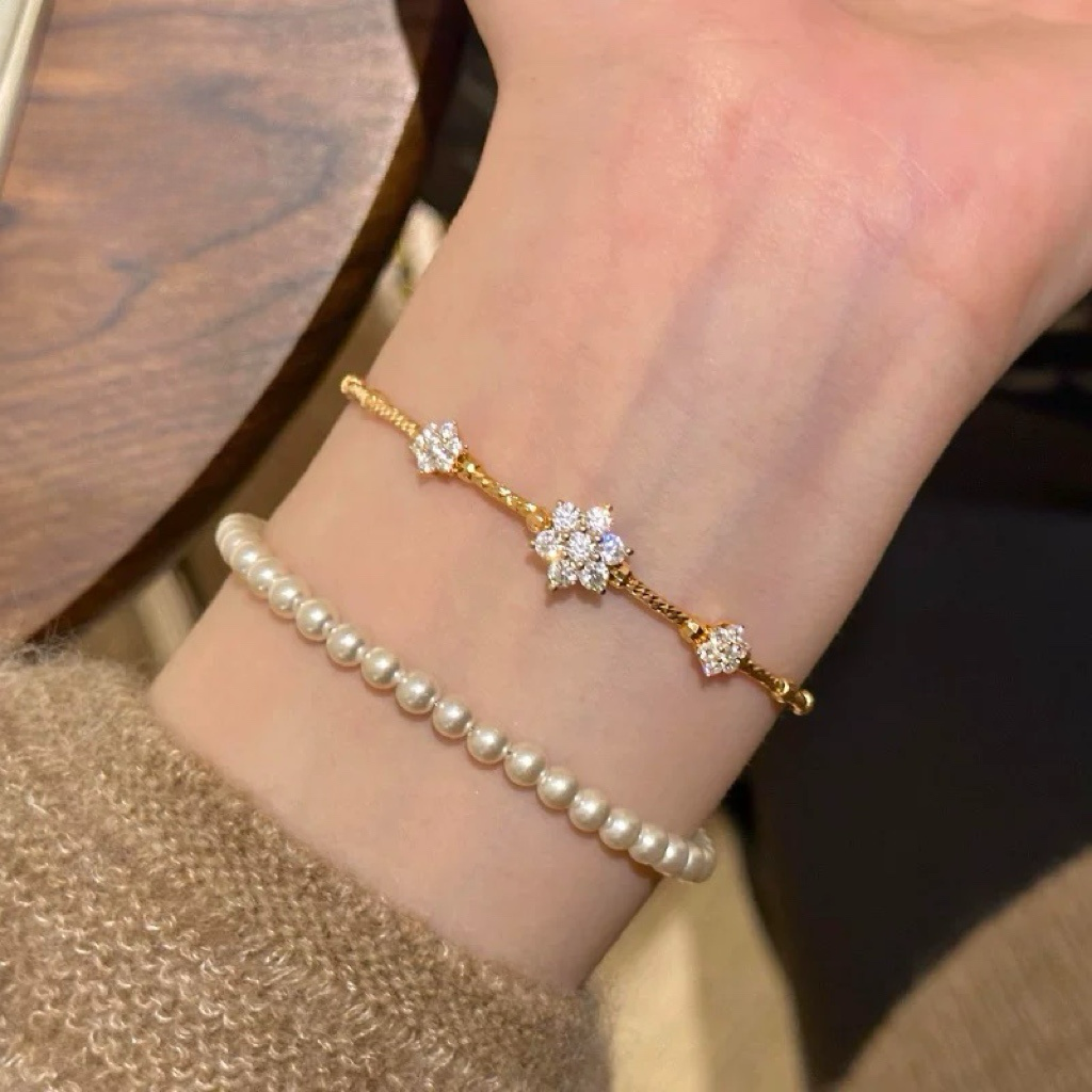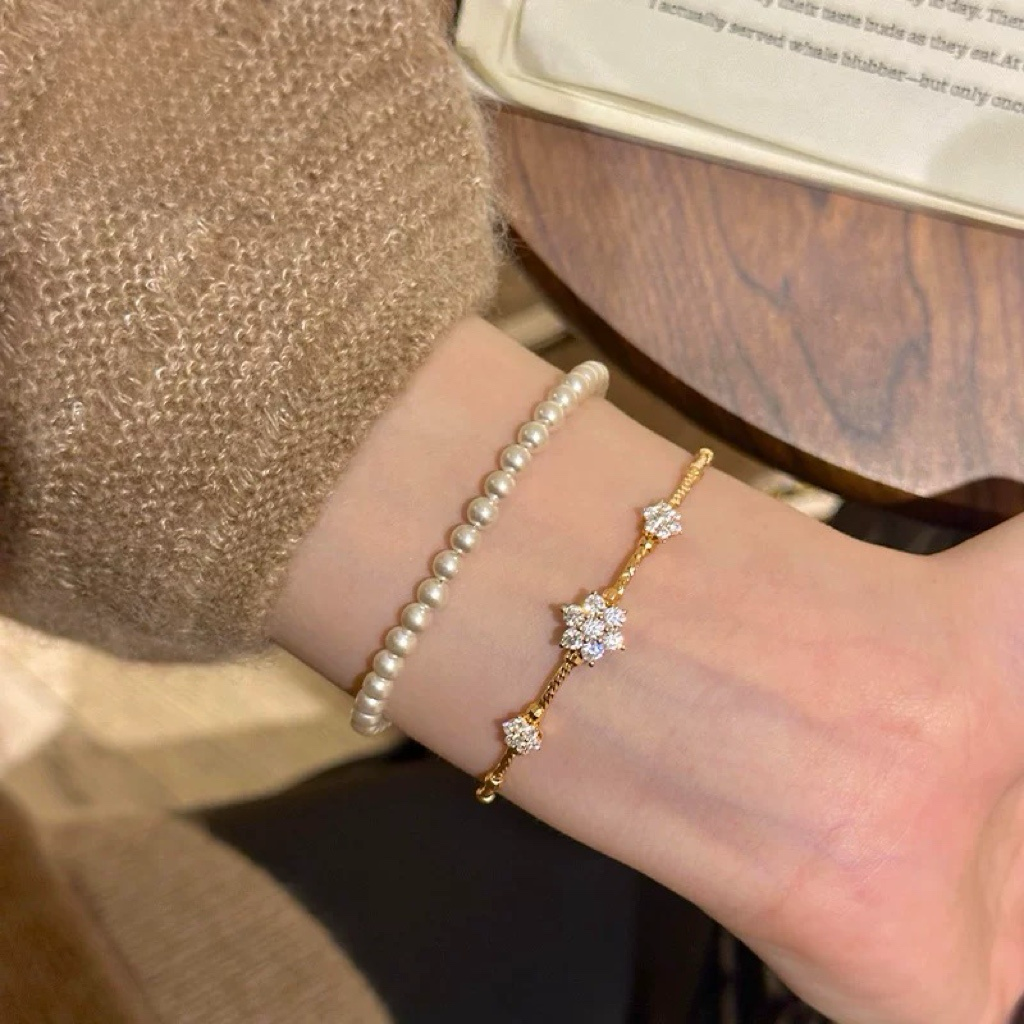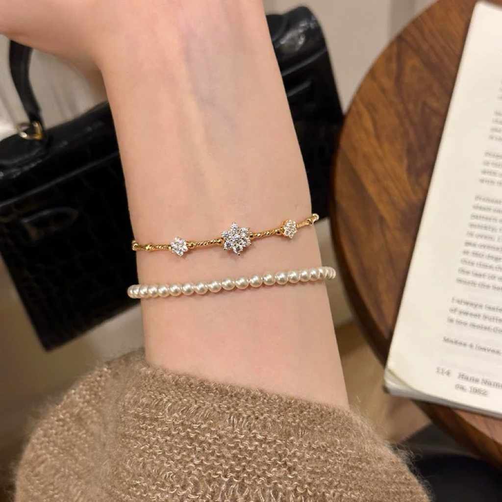 Material: Pearl/ZirconSize: Bracelet length 18cm Pearl: 4mmWeight: 2.8g